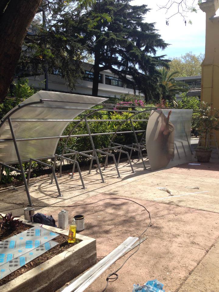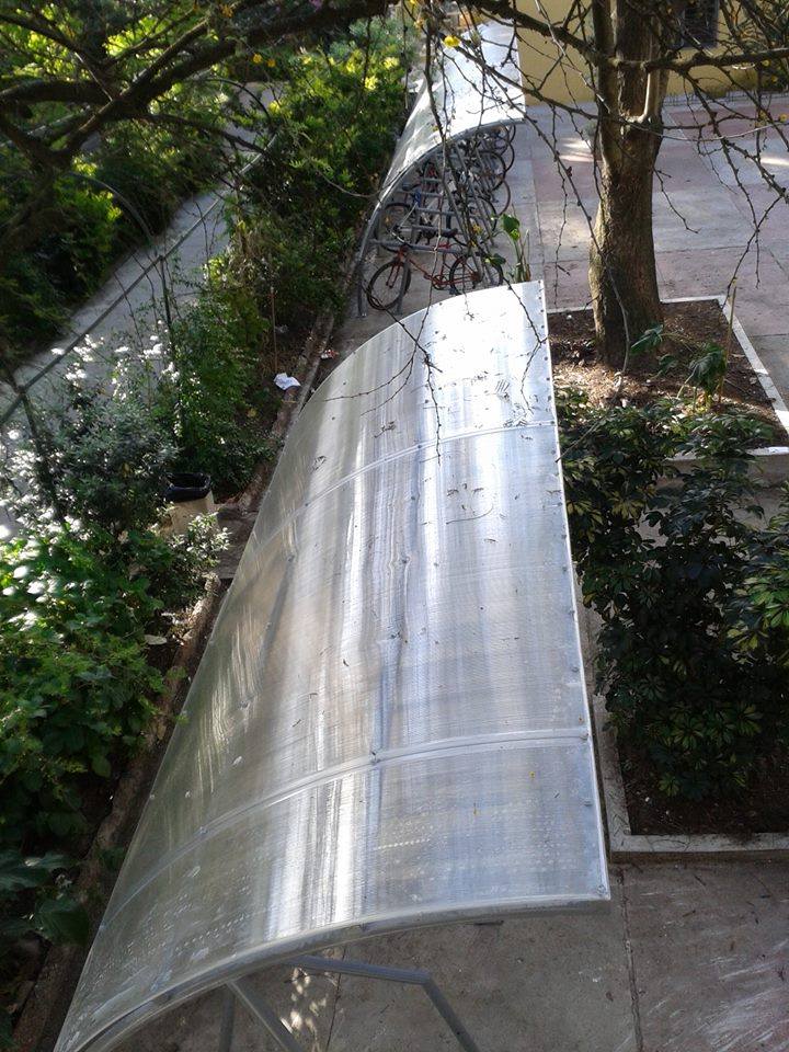 Ubicado en el patio de Facultad, frente a los locales de los gremios, la concreción del bicicletario implicó la recuperación de ese espacio que se utilizaba como depósito de las obras recientemente terminadas.