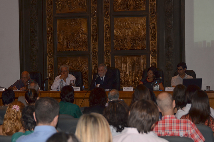 El Decano Luis Leopold inició dando la bienvenida a los presentes y agredeciendo a los Ministerios, Instituciones y Asociaciones que apoyaron la realización del 1er Censo Nacional en Psicología. Nombró asimismo al equipo de trabajo que llevó adelante la iniciativa, integrado por Técnicos del Ministerio de Salud Pública, Asistentes Académicos, Docentes y Funcionarios de la Facultad.