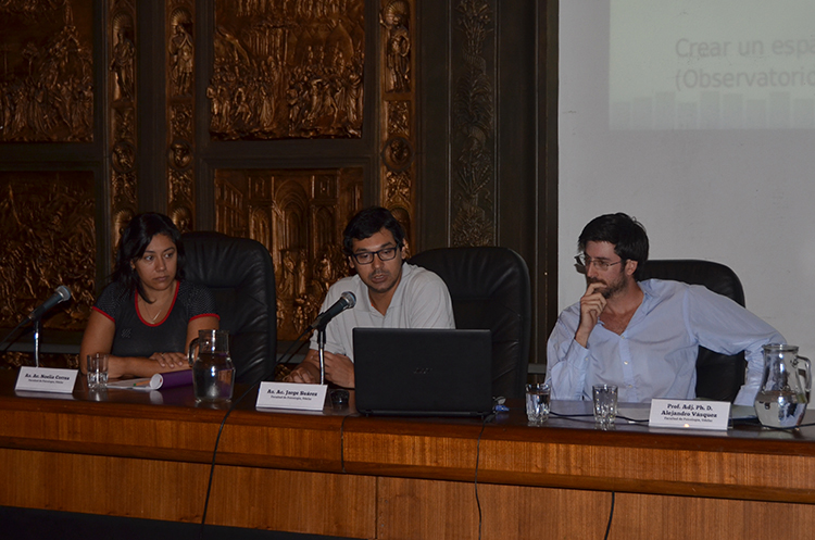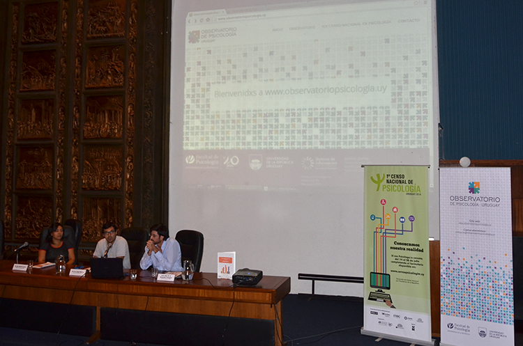El jueves 26 de febrero se realizó la presentación de la publicación "1er Censo Nacional en Psicología (Uruguay 2014). Perfil sociodemográfico, formación y desempeño profesional" en el Salón Azul de la Intendencia de Montevideo. Participaron el Ministro de Industria, Energía y Minería, Roberto Kreimerman; el Rector de la Universidad de la República, Roberto Markarian; y, por la Facultad de Psicología, el Decano Luis Leopold, el Prof. Adj. Ph. D. Alejandro Vásquez, la As. Ac. Lic. Psic. Noelia Correa y el As. Ac. Jorge Suárez.