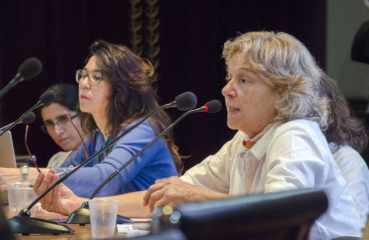 La docente Graciela Sapriza, de la FHCE, expuso un trabajo llamado “Nuevos sujetos en el campo de la memoria en Uruguay”. Repasó distintos procesos de construcción de los “relatos compartidos”, y señaló que la vuelta a la democracia trajo aparejadas luchas sociales que irrumpieron en el espacio público evidenciando tensiones. “Cada grupo, con su relato histórico –en el que se cuelan permanentemente los recuerdos, olvidos y silencios– construye su propia narración del pasado”.