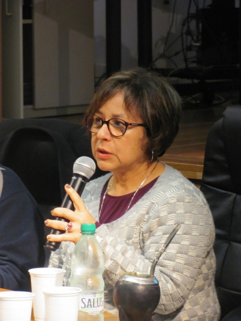 Seguidamente hizo uso de la palabra la decana Bagnato, quien dio la bienvenida, agradeció a los presentes y se congratuló de recibirlos en el nuevo salón de actos de la Facultad, espacio de reciente inauguración.