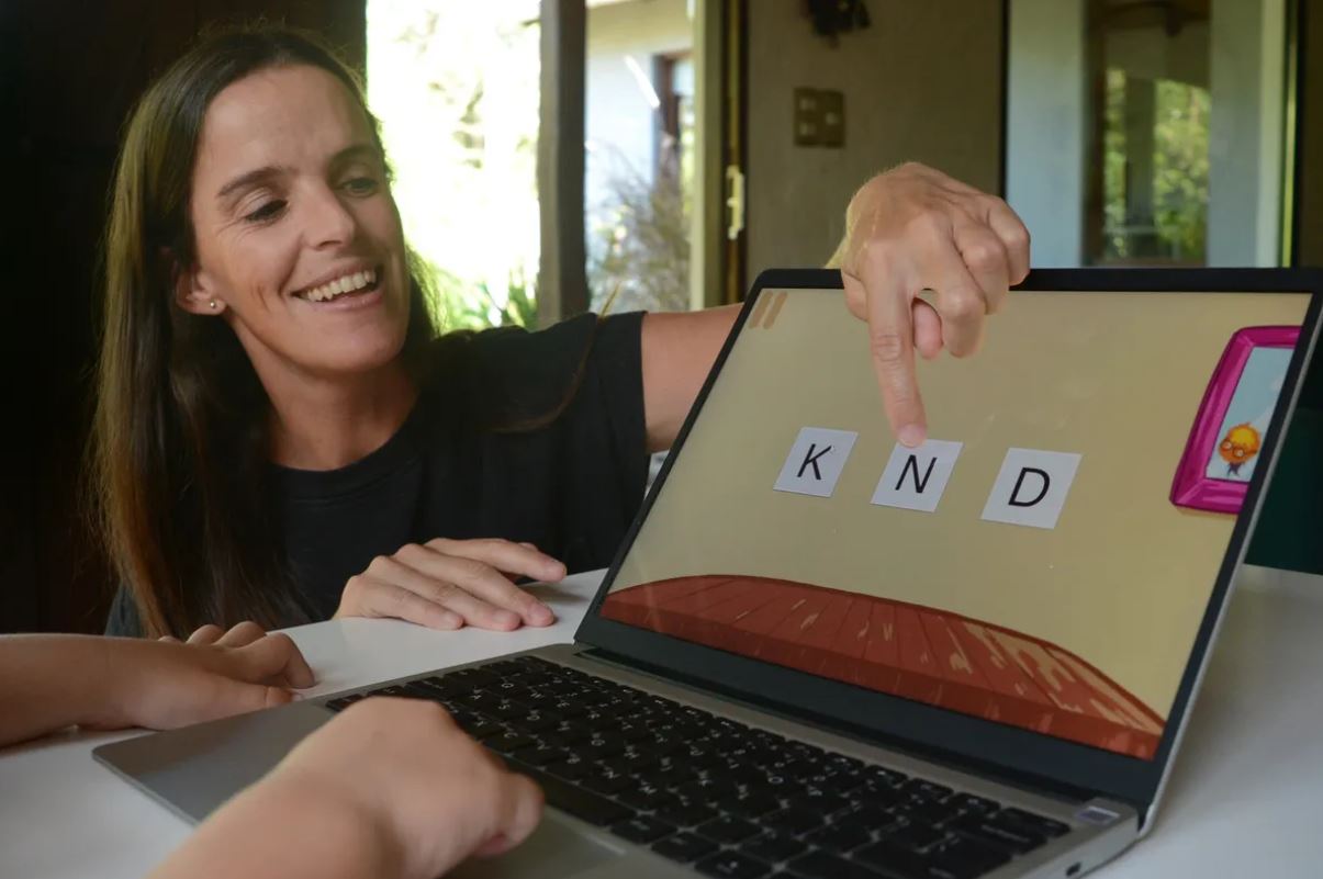En uno de los ejercicios, los niños escuchan un sonido y, entre tres letras escritas en la pantalla, deben elegir cuál corresponde. En otro separan palabras en sílabas y fonemas. En una tercera actividad repiten secuencias de colores, lo que funciona como predictor del aprendizaje lector.